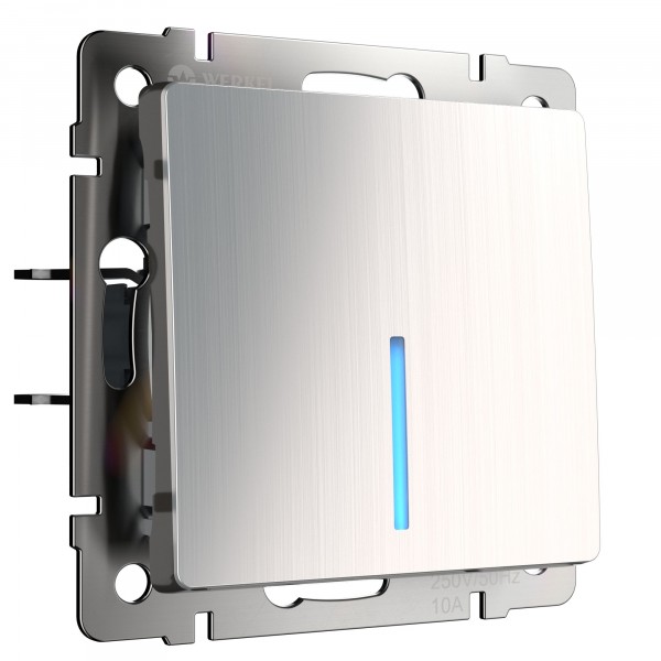 W1110102/ Электроустановочные изделия - Выключатель одноклавишный с подсветкой (глянцевый никель) W1110102/ Электроустановочные изделия - Выключатель одноклавишный с подсветкой (глянцевый никель)